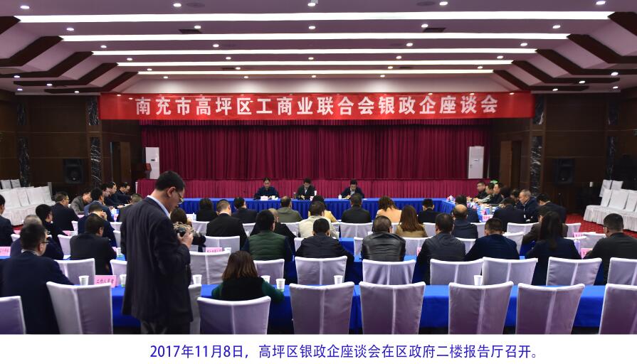 11月8日,南充市高坪区工商联组织承办银政企座谈会。区委常委、统战部长赵启主持会议,区委副书记、区长陈多平,区政协副主席张志明,区级相关部门、驻区金融机构主要负责同志和26家民营企业负责人参加了座谈会。会议旨在通过银政企“零距离”接触,建立长期稳定的银企沟通合作机制,促进区域经济和金融事业共同繁荣发展。
